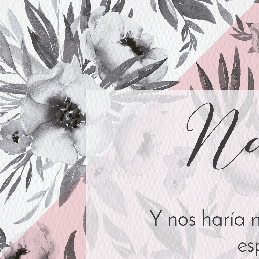 La invitación de boda Florencia combina flores en blanco y negro con toques Nude y está impresa sobre un papel gofrado con textura.